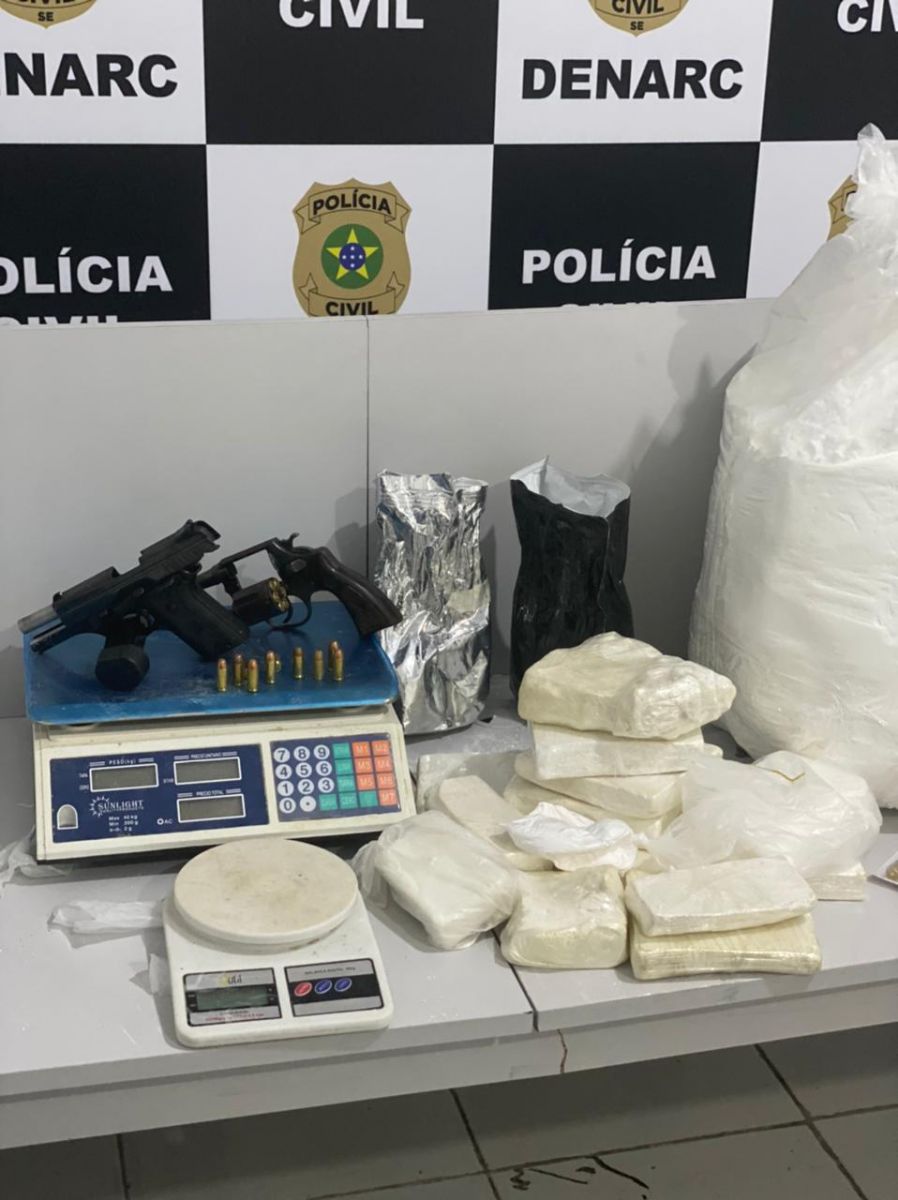 Com eles, além de cocaína, foram apreendidas duas armas de fogo