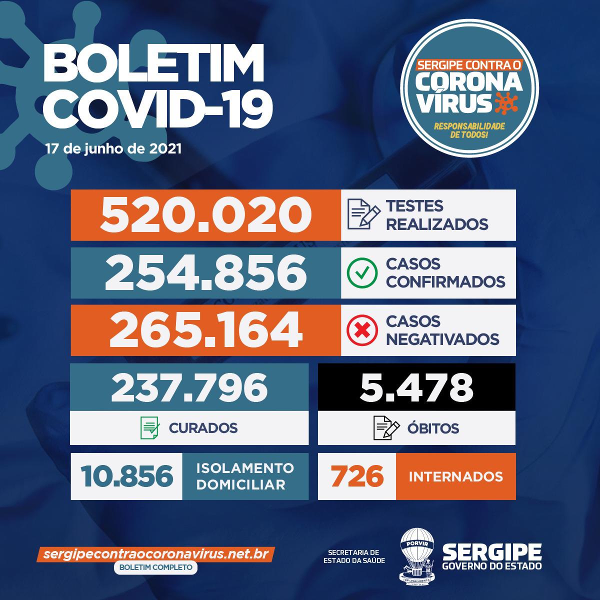 A Secretaria de Estado da Saúde (SES) divulga nesta quinta-feira, 17, o boletim epidemiológico do coronavírus, com 635 casos, três óbitos nesta quinta e 22 mortes que estavam em investigação e foram confirmadas. Em Sergipe, 254.856 pessoas já testaram positivo para a Covid-19 e 5.478 morreram. Até o momento, 237.796 pacientes foram curados.