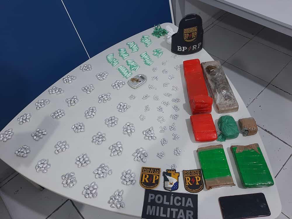 A ação policial também resultou na apreensão de 3,5 kg de maconha em tabletes, além de 310 buchas do mesmo entorpecente, 76 pinos cheios, uma pedra pesando 125 gramas e mais 15 invólucros de cocaína, 285 pedras de crack, uma balança de precisão e um celular.