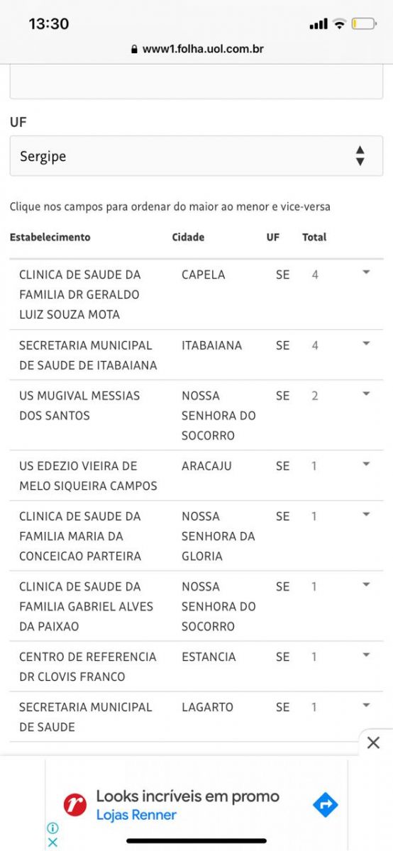 | Estabelecimento | Cidade | UF | Total | ||||||||||||||||||||||