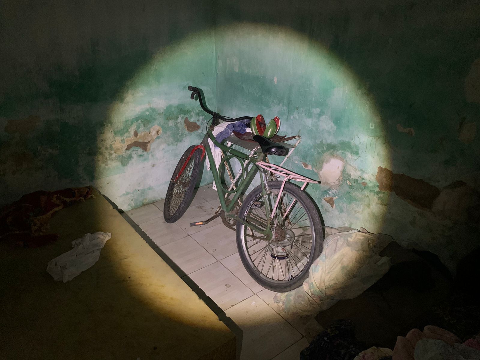 Com a colaboração da população, foi possível identificar um dos suspeitos do crime e, em sua residência, foi encontrada a bicicleta da vítima, um pedaço de madeira coberto de sangue e um carrinho de supermercado também com marcas de sangue.