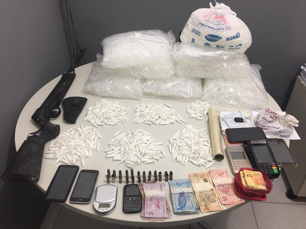 Já na casa dos investigados, foram apreendidos mais de 7 mil tubos, tipo eppendorf, para acondicionamento da droga cocaína, outros 475 tubos contendo a mesma droga, munições de diversos calibres e anotações alusivas ao tráfico.