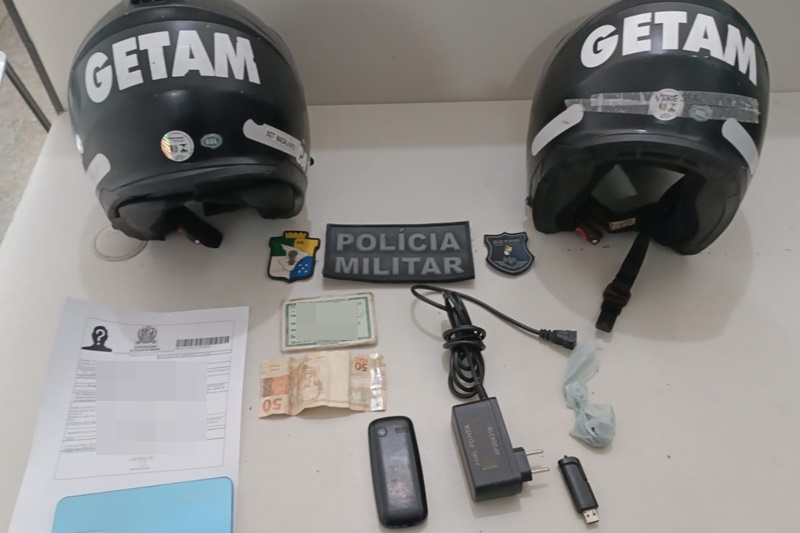 A equipe prosseguiu com a busca pessoal e verificação de dados, quando constatou que o infrator estava portando um documento falso de identificação. Em virtude do fato, foi feita uma nova consulta, como base nas informações da sua motocicleta, que revelou a real identidade do acusado.